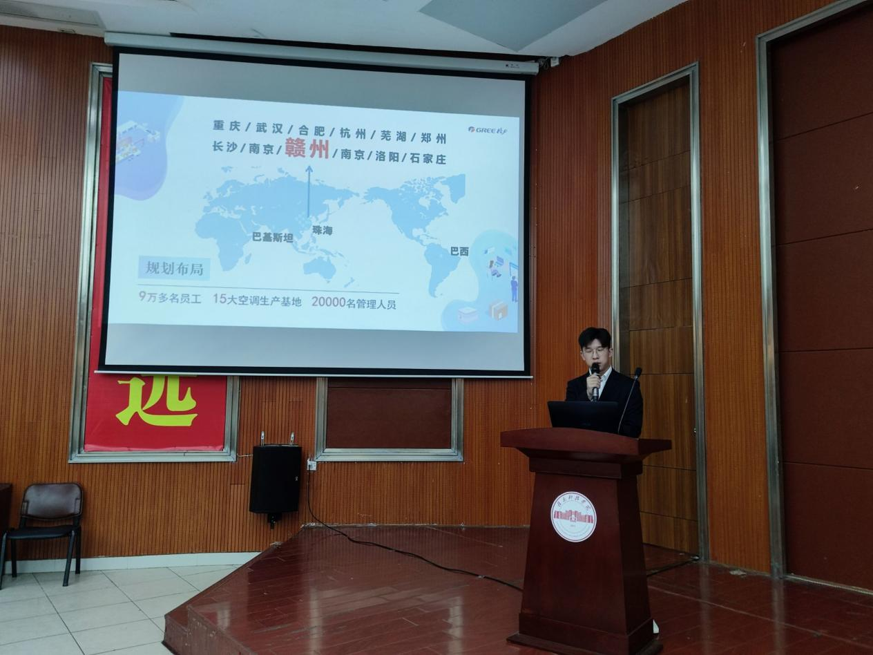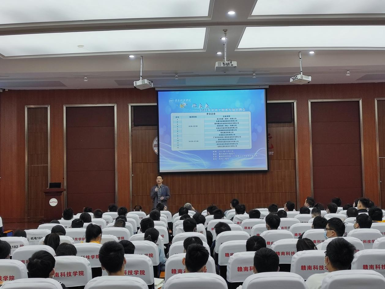 本次机电专场招聘会共邀请格力(赣州)有限公司格力电器(赣州)有限公司、青拓集团、东莞市硅翔绝缘材料有限公司、广州中设机器人智能装备股份有限公司、惠州市隆合科技有限公司、江西绿萌科技控股有限公司等十余家世界500强企业或者在行业内有一定地位、与学校合作密切的优质企业开展集中宣讲,机电工程系2018级各专业近300人参加宣讲会。宣讲中,各家企业从公司背景、薪酬福利体系、职业发展通道、独特优势等方面向毕业生进行推介展示。宣讲活动后,用人单位和毕业生移步招聘会现场进行面试洽谈。宣讲会由机电工程系主任刘辉主持。