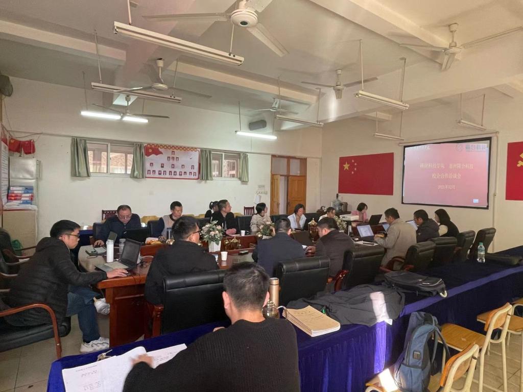 首先,惠州隆合科技有限公司何总结合我国“碳达峰,碳中和”战略目标及后疫情时期经济复苏的背景,介绍了企业发展现状和我国新能源行业大有可为的前景,认为当前的国内生产发展态势向好,企业急需大量招聘技术人才。何总希望与学校建立校企合作育人长效机制,合力培养以企业需求为导向的研究型和运用型人才,建立稳定的人才供应链。为进一步加强合作,提高人才培养质量,促进毕业生尽快适应企业发展,企业表示,将派遣骨干人才参与学校课程教学,促进学校“双师型”教师队伍建设;加强校企资源共享,搭建校企合作平台。