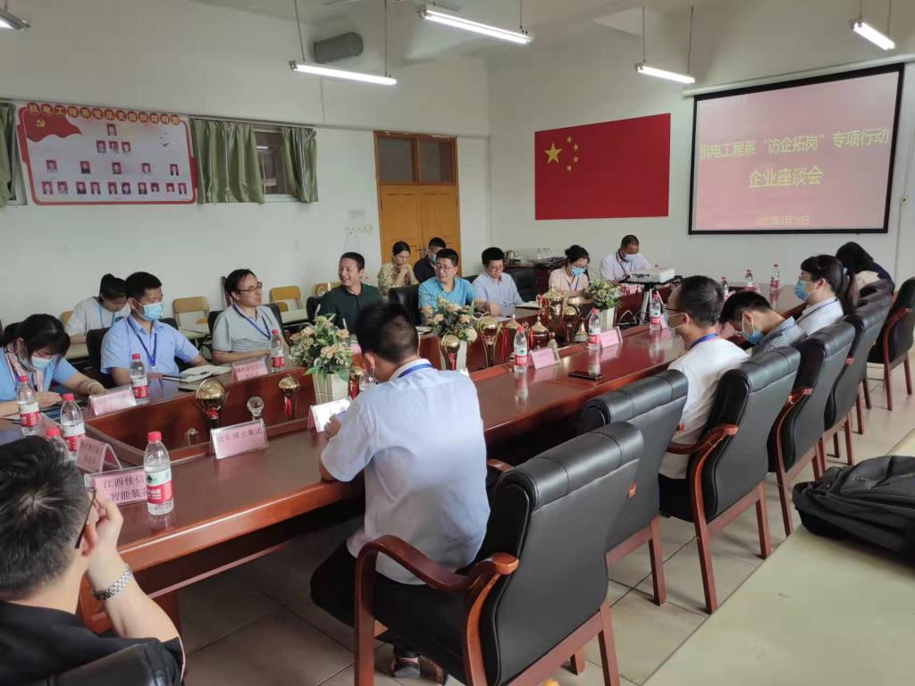 本网讯:4月28日上午,机电工程系在崇善楼Z820会议室召开了“访企拓岗”专项行动企业座谈会,江西赣锋锂业股份有限公司、美克数创(赣州)家居智造有限公司、崇义章源钨业股份有限公司、赣州金信诺电缆技术有限公司、赣州市同兴达电子科技有限公司、赣州澳克泰工具技术有限公司、江西志浩电子科技有限公司、赣州金环磁选科技装备股份有限公司、世泰科江钨特种钨(赣州)有限公司、朝阳聚声泰(信丰)科技有限公司、赣州珐玛珈智能设备有限公司、赣州金顺科技有限公司、赣州晨光稀土新材料有限公司等13家公司的领导嘉宾,学校过渡期管委会委员付玉华,机电工程系主任刘辉、副主任关开荣,以及机电工程辅导员张敏、孔靖宇、陈璐参加了会议,会议由刘辉主持。