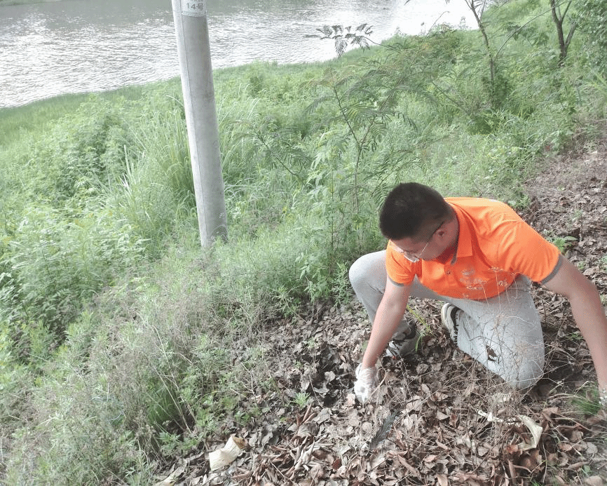 傍晚,从竹山村回来后童心逐梦队在陂头镇河岸边发现有垃圾的踪影,立即开展守护陂头“最美岸线”志愿活动。