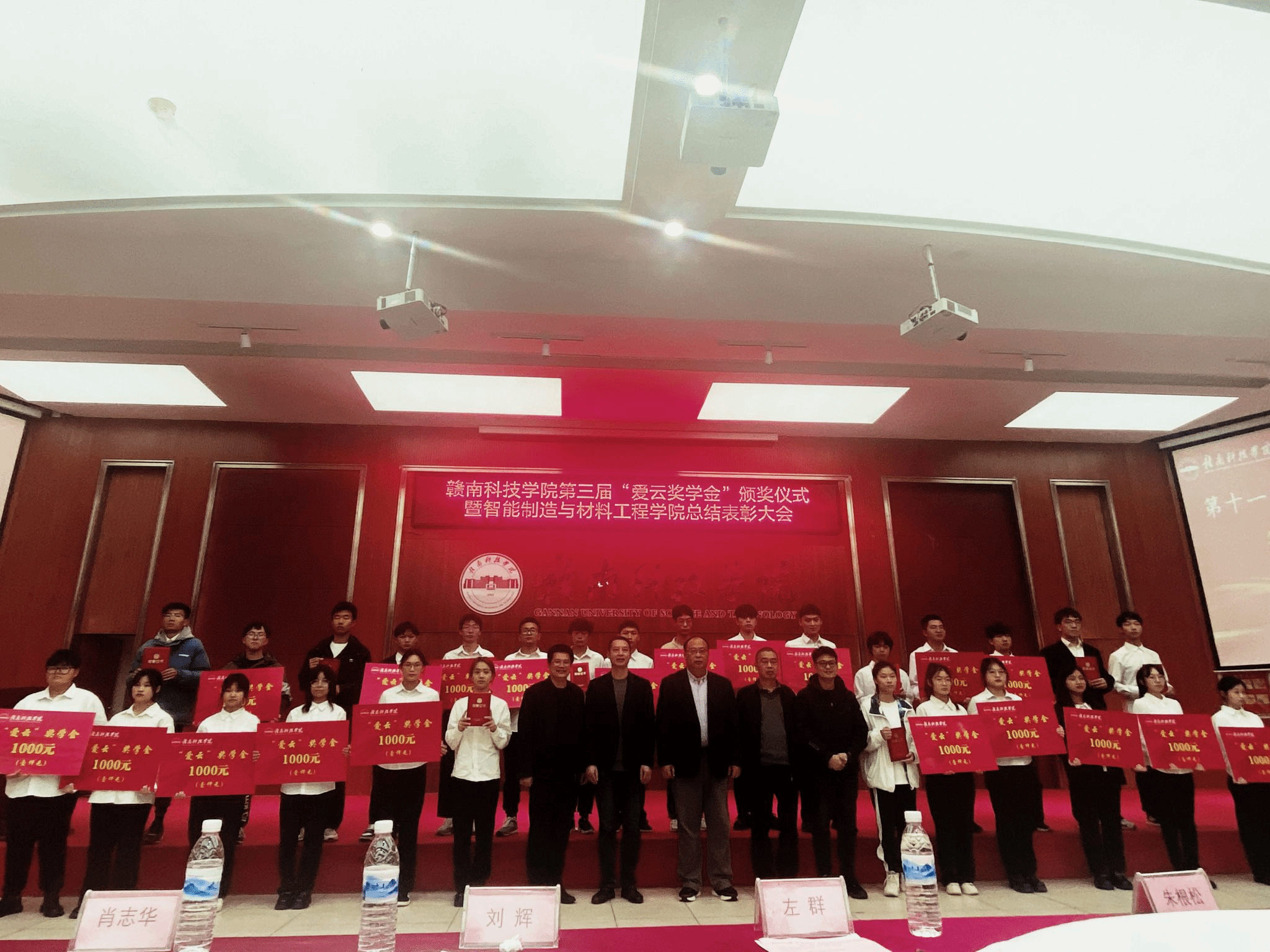 为展示优秀学生风采,发挥先进典型的榜样示范作用,用先进典型感召、激励广大青年学生,引导同学们勤奋学习、勇于实践、积极进取,beat365唯一官方网站于12月14日晚19:00在图书馆学术报告厅,召开beat365唯一官方网站第三届“爱云奖学金”颁奖仪式暨beat365唯一官方网站总结表彰大会,副校长左群,机电工程系主任刘辉、党总支书记朱根松、副主任关开荣与肖志华出席颁奖仪式。