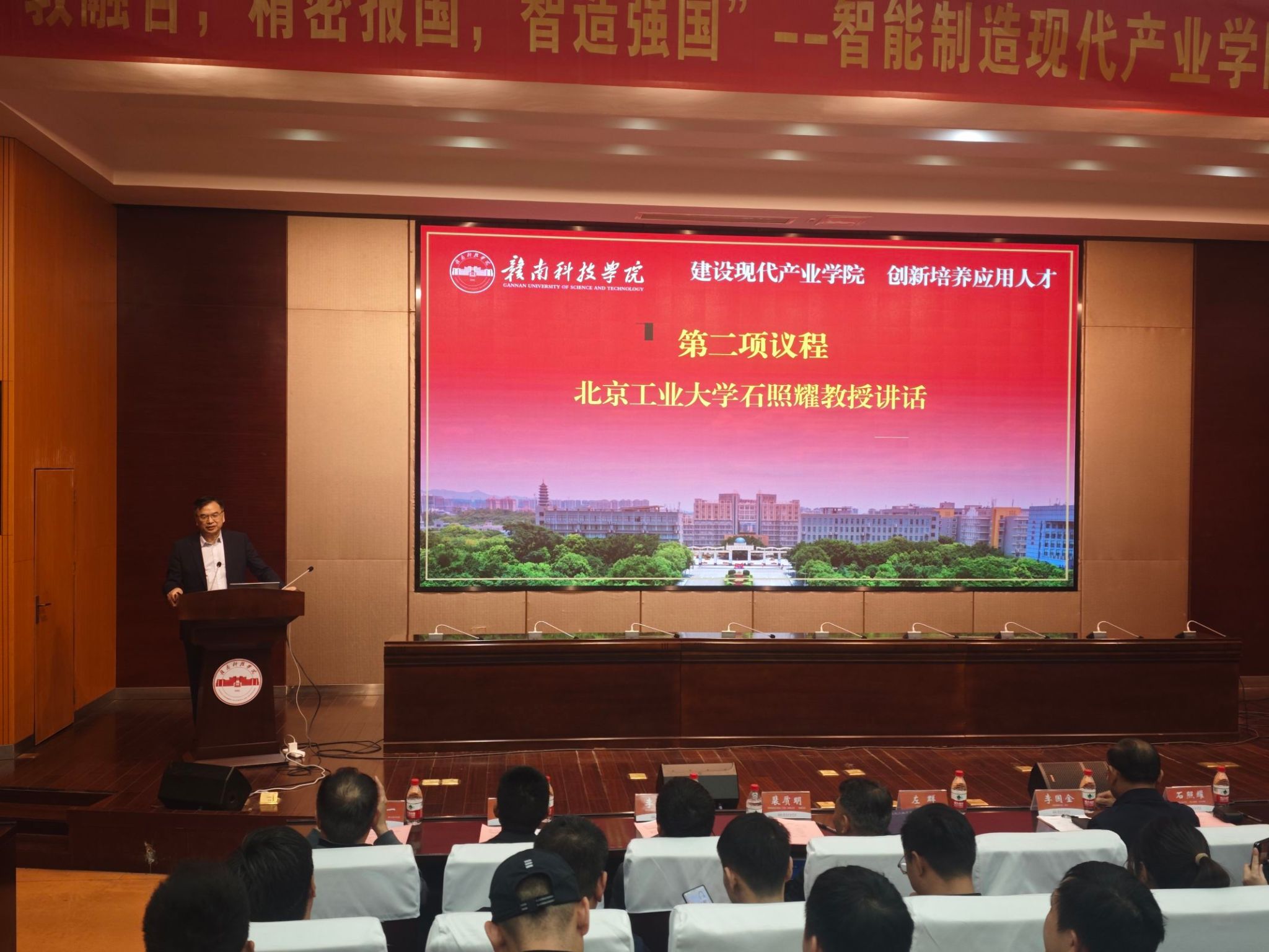 本网讯:11月29日,“照耀齿轮工程师班”开班仪式在beat365官网逸夫楼学术报告厅举行。学校党委副书记、校长李国金,党委委员、副校长左群,国家产业基础专家委员会委员、北京工业大学教授石照耀出席,江西省机械工程学会秘书长杨文、麦格纳动力总成(江西)有限公司前副总裁裴质明、深圳兆威机电股份有限公司董事长李海周、深圳合发齿轮有限公司总经理曹小林、赣州群星机械有限公司总经理吴晓华、东莞智能科技有限公司总经理刘辉华、苏州助胜科技有限公司总经理李峰,以及来自北京工业大学、湘潭大学、安徽理工大学等高校的专家学者,以及beat365官网师生代表,共计300余人参加。