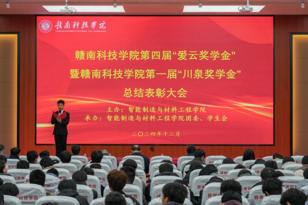 本网讯:12月24日晚,beat365官网在图书馆学术报告厅举办第四届“爱云”奖学金暨第一届“川泉”奖学金总结表彰大会。学校党委委员、副校长左群出席活动,beat365唯一官方网站党委副书记朱根松,党委委员、副院长刘辉,党委委员关开荣、肖志华及学院全体辅导员、学生代表参加此次表彰大会。