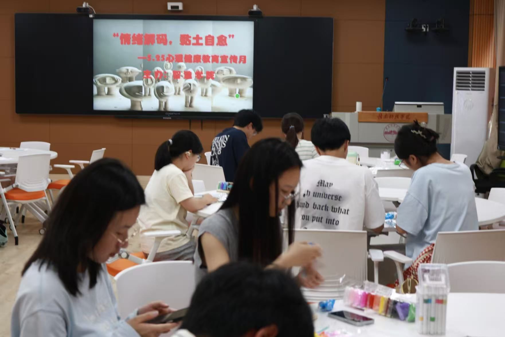 “我一开始不知道该怎么做,后来就跟着自己的感觉慢慢捏,越做越觉得好像真的把压抑的情绪释放出去了。”参与学生在活动后分享道。在轻柔的音乐陪伴下,大家从最初的拘谨逐渐放松下来,将情绪在手中揉捏、塑形,完成一件件独一无二的作品。