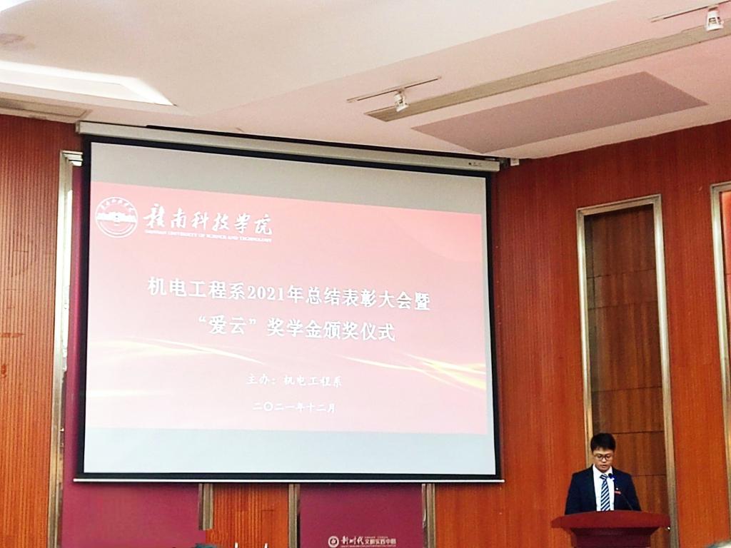 大会伊始,机电工程系副主任关开荣宣读了《关于表彰2021年beat365唯一官方网站“爱云”奖学金获得者的决定》。