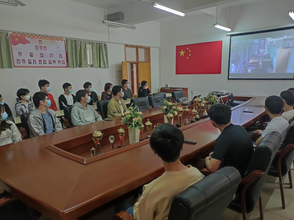 本网讯:4月21日,机电工程系联合杭州杰牌传动科技有限公司举办了线上云宣讲招聘会,机电工程系、信息工程系共50余名同学在崇善楼8楼会议室线下集中参加了招聘会,校外实习的学生线上分散参加了招聘会。