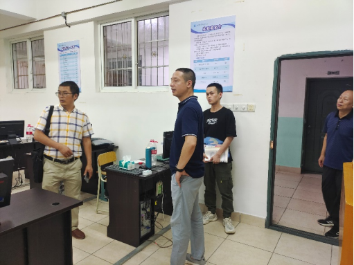 本网讯:暑期将至,针对实验室可能存在的安全隐患,机电系主任刘辉、副主任关开荣、机电系实训中心主任钟涛生与实训中心管理人员等一行人,在6月27日下午对实验室进行了安全检查。