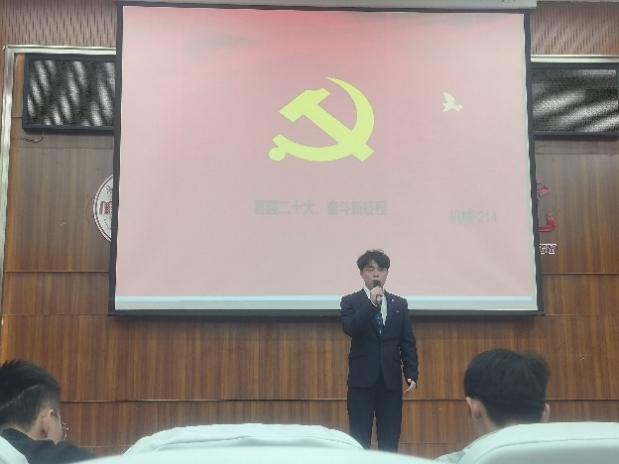 党的二十大临近,本次比赛围绕“喜迎二十大,永远跟党走,奋进新征程”为主题,共派出十六支队伍进行角逐。首先,主持人进行前言介绍,宣布微团课比赛开始,各队伍主讲人依次以ppt形式进行宣讲。比赛过程中,主讲人通过ppt演示以及出色的演讲,向老师和同学们展示了党百年来走过的光辉历程,彰显出红色精神散发的独特魅力,昭示着青年学生们敢于拼搏、勇于担当的使命决心,引发了在场同学们内心的共鸣,激起了阵阵掌声。