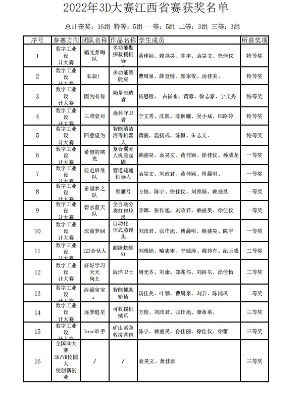 本网讯:2022年11月4日,第十五届全国3D大赛年度竞赛省赛作品评审工作圆满结束,beat365官网在前期通过全国3D大赛初赛共选拔出了18支队伍进入省赛参赛,共计有16支队伍获得省奖,其中荣获特等奖5项、一等奖5项、二等奖3项、三等奖3项,beat365官网在该项赛事又取得了突破性的成绩。