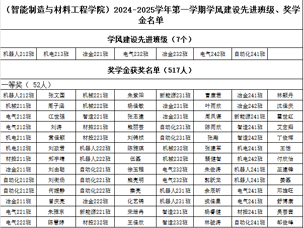 2024-2025学年第一学期学风建设先进班级和综合奖学金初评名单公示