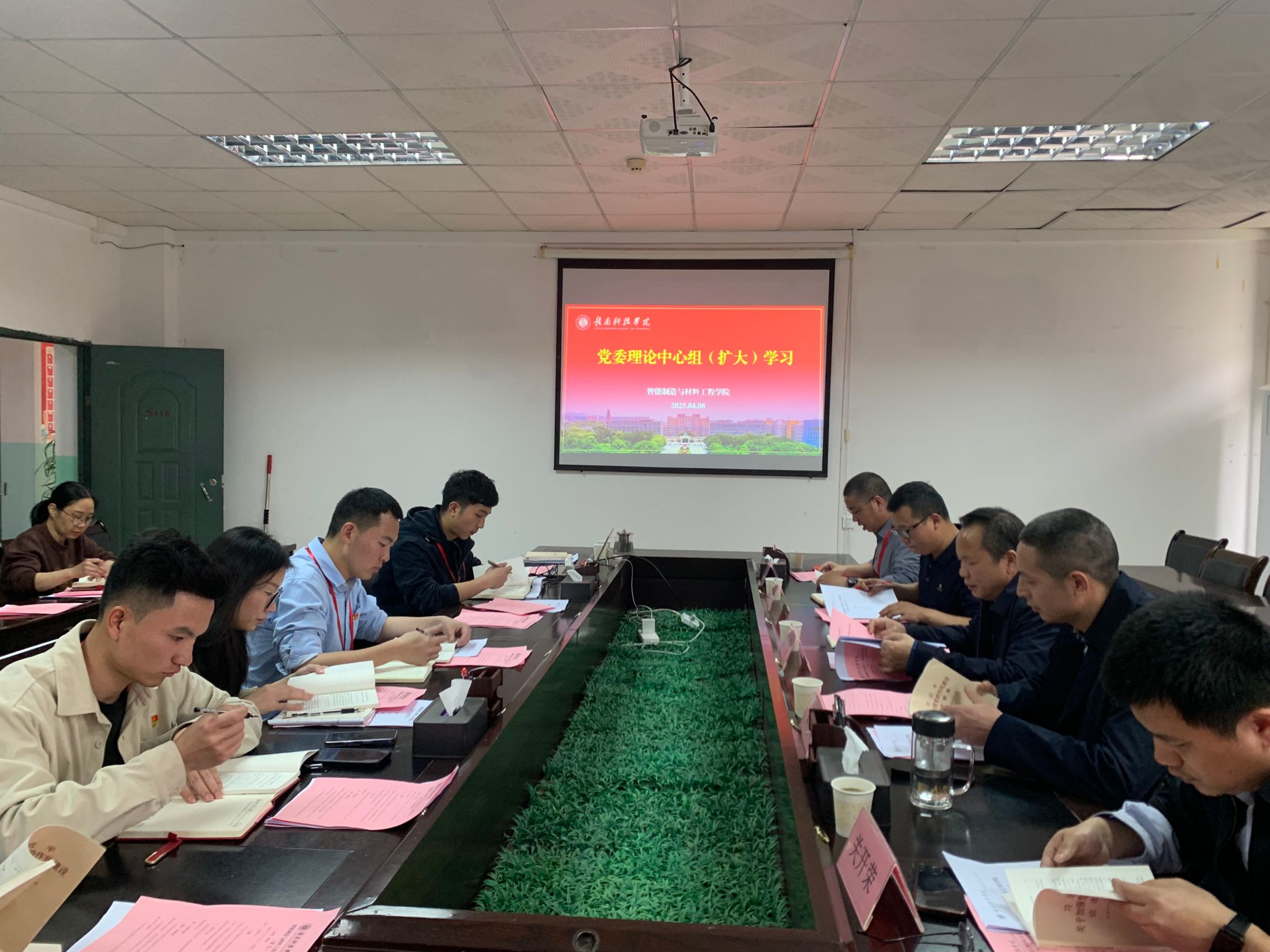 本网讯:为深入贯彻中央八项规定精神学习教育,进一步加强党的作风建设,4月8日下午,beat365唯一官方网站在工程楼S416召开了党委理论学习中心组学习会。学校党委委员、纪委书记陈文新、纪委综合办公室副主任刘锦龙到会指导,学院党委委员、支部书记、支委、党建组织员参会。会议由学院党委副书记朱根松同志主持。