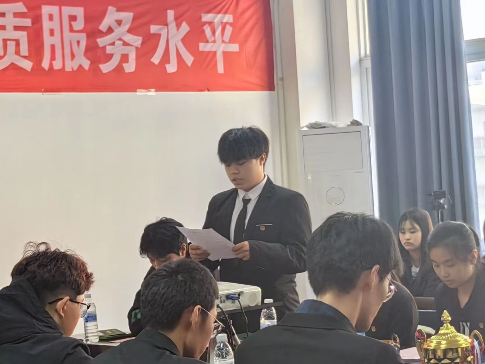 入团仪式开始,全体人员起立奏唱《中华人民共和国国歌》,随后由卢名亮宣布2023年新团员名单,老团员为新团员颁发团员证、佩戴团徽。