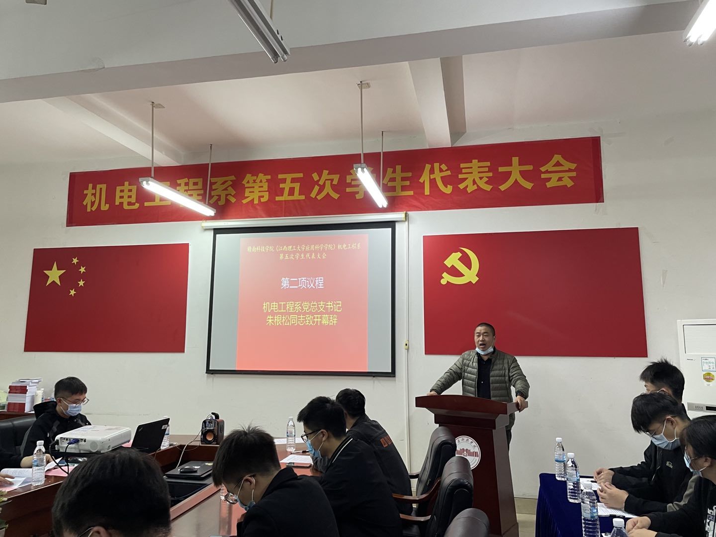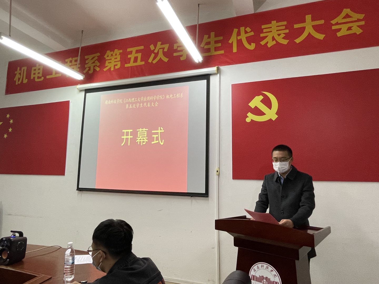 紧接着举行大会开幕式,由团总支书记张敏老师主持,出席本次大会的领导和嘉宾有机电工程系党总支书记朱根松老师、机电工程系副主任肖志华老师,并选出41名代表参加本次大会。