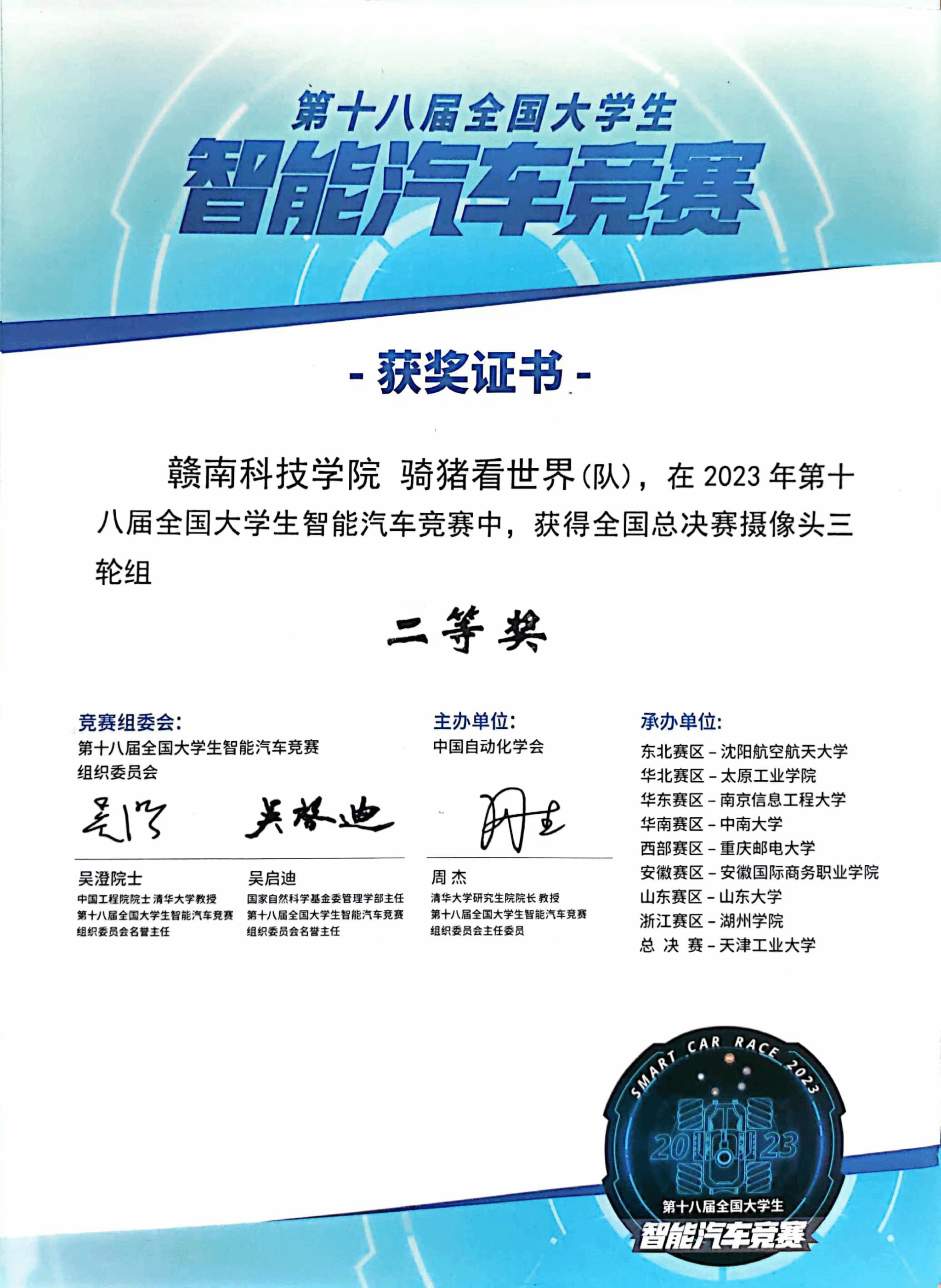 本网讯:8月17日至19日,第十八届全国大学生智能汽车竞赛全国总决赛在天津工业大学举办,beat365官网参赛队伍荣获摄像头组二等奖的好成绩。