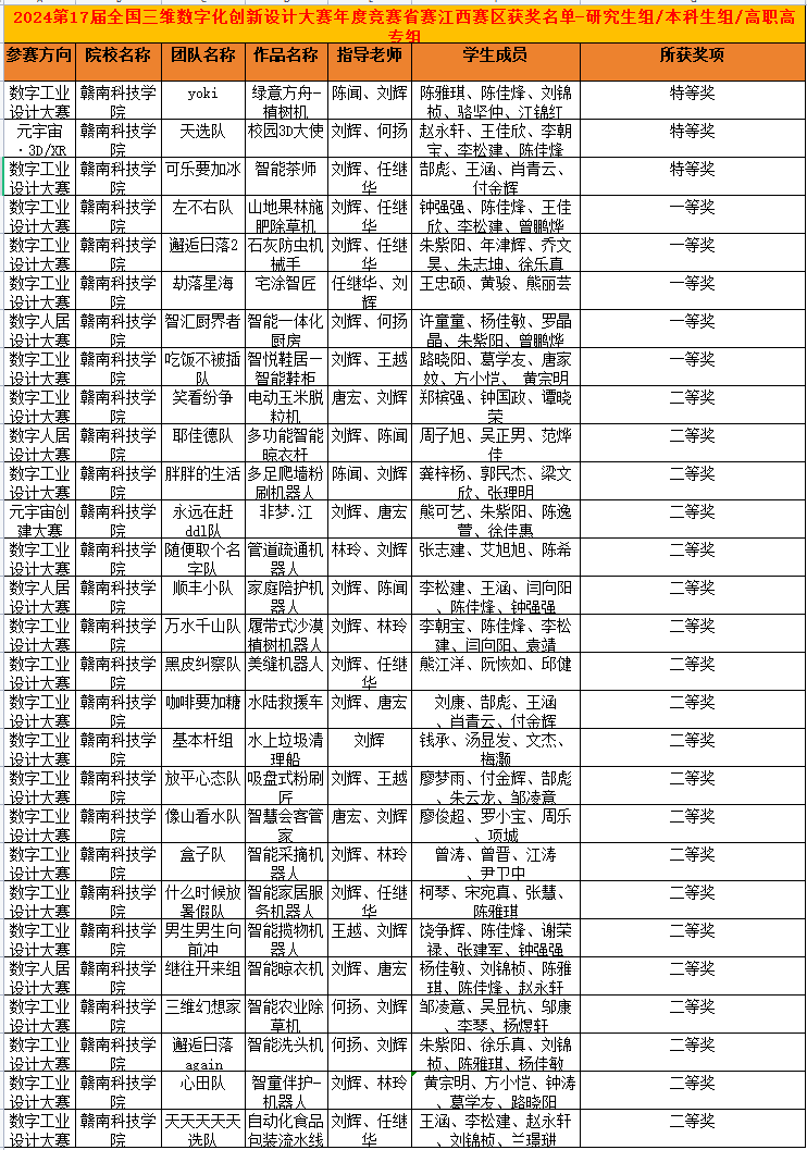 本网讯:11月3日,第十七届全国三维数字化创新设计大赛省赛在井冈山大学如期举行。beat365官网beat365唯一官方网站学子经过全国3D大赛初赛严格筛选,共有7支表现优异的队伍成功晋级至线下参赛环节,其余参赛队伍则以线上形式参与比赛。由刘辉、唐雨两位老师带队参赛的学子们充分发挥竞技水平,在大赛中取得了优异成绩,荣获特等奖三项,一等奖五项,二等奖二十项。