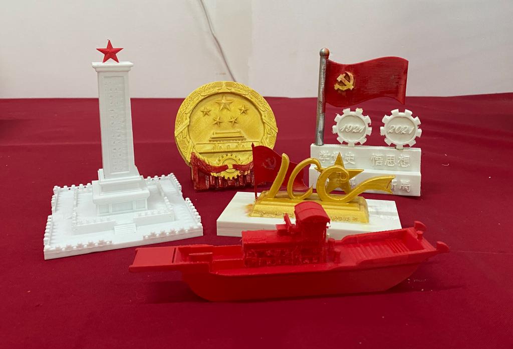 为庆祝中国共产党成立100周年,本届大赛以“红色精神、自主创新”为主题,吸引了来自全校机械工程、机械电子、汽车服务、材控、冶金等专业50多名同学参赛。比赛通过现场问辩和答辩展示两个环节,最终评选出一等奖14个,二等奖19个,三等奖15个。作品《高举党的100周年旗帜》、《智能仿生蜘蛛机器人》等作品获得3D打印比赛一等奖;作品《红船》、《多功能搅拌杯》等获得二等奖;作品《红军帽》、《多功能手机支架》等获得三等奖。