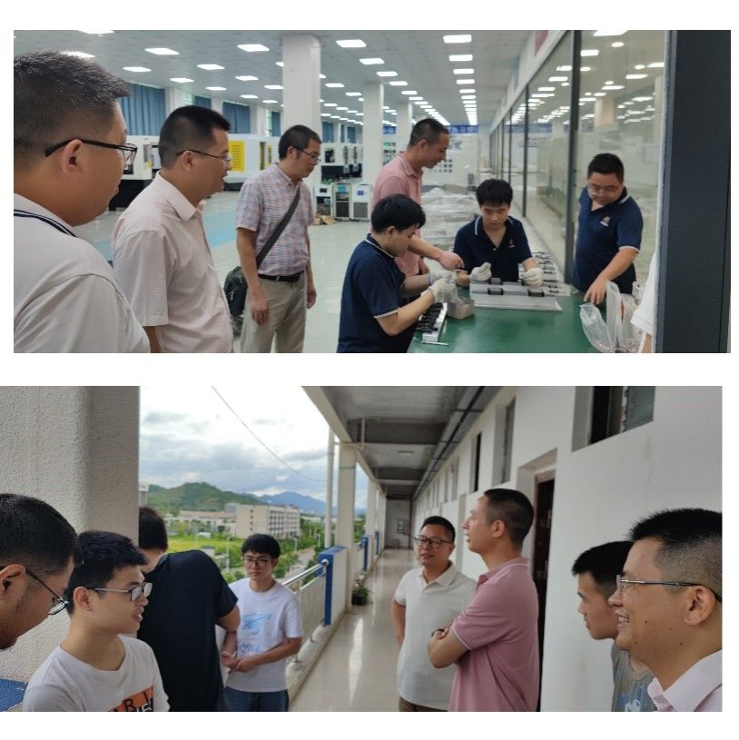 刘辉一行率先走访江西华派光电科技有限公司,就学生长实习和科研服务等内容与华派公司领导淦农夫、樊静波展开讨论,并签署校企合作协议,随后去企业车间看望实习学生,了解学生们的在生产工作中遇到的问题,并提出建议。