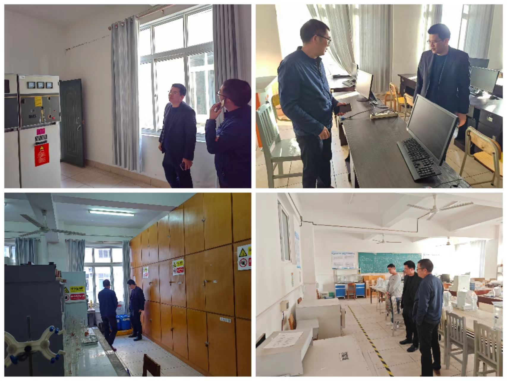 本网讯:11月20日,机电系副主任关开荣、实训中心主任钟涛生等人深入机电系实验室排查安全隐患、指导实验室安全工作。