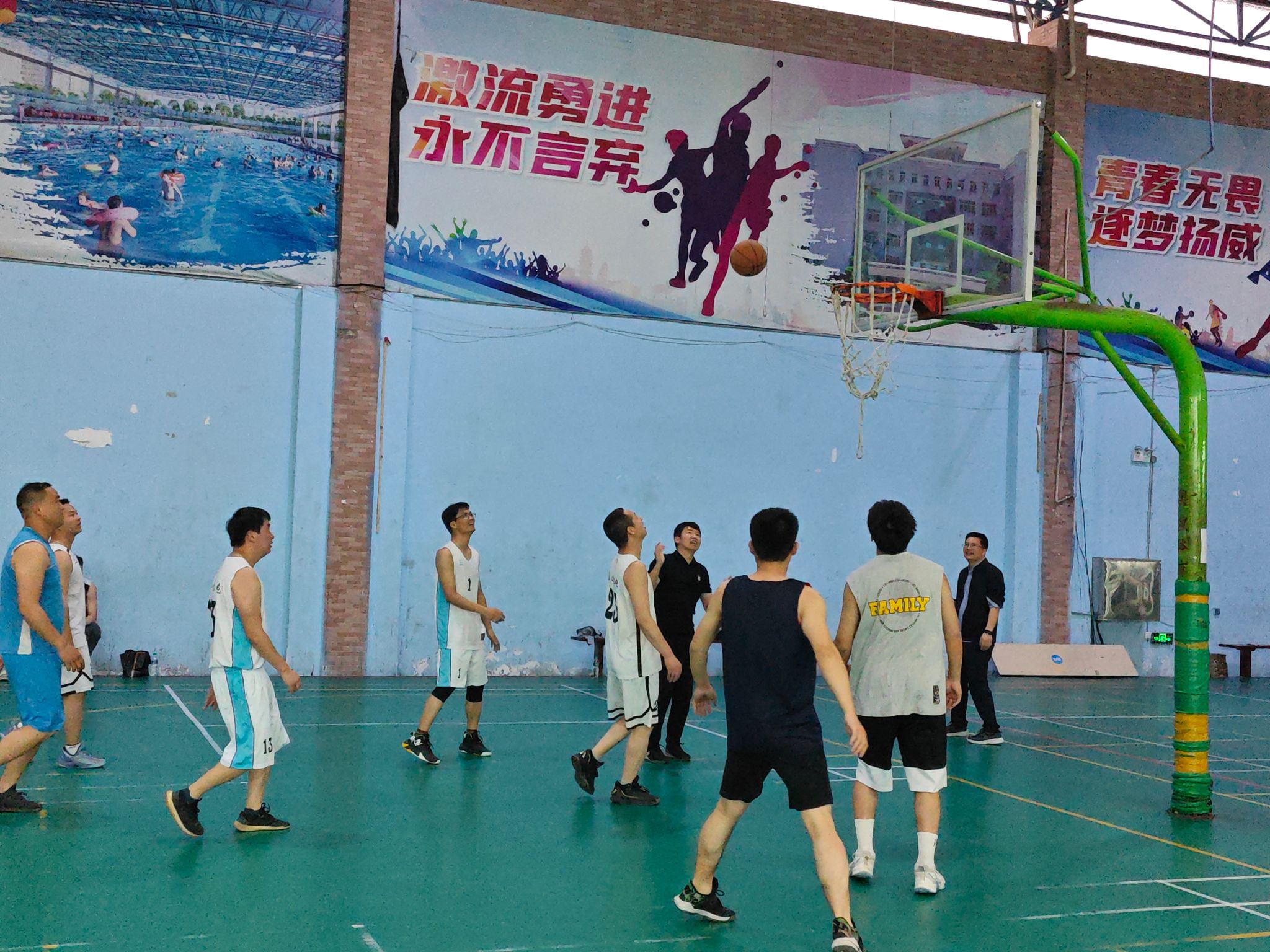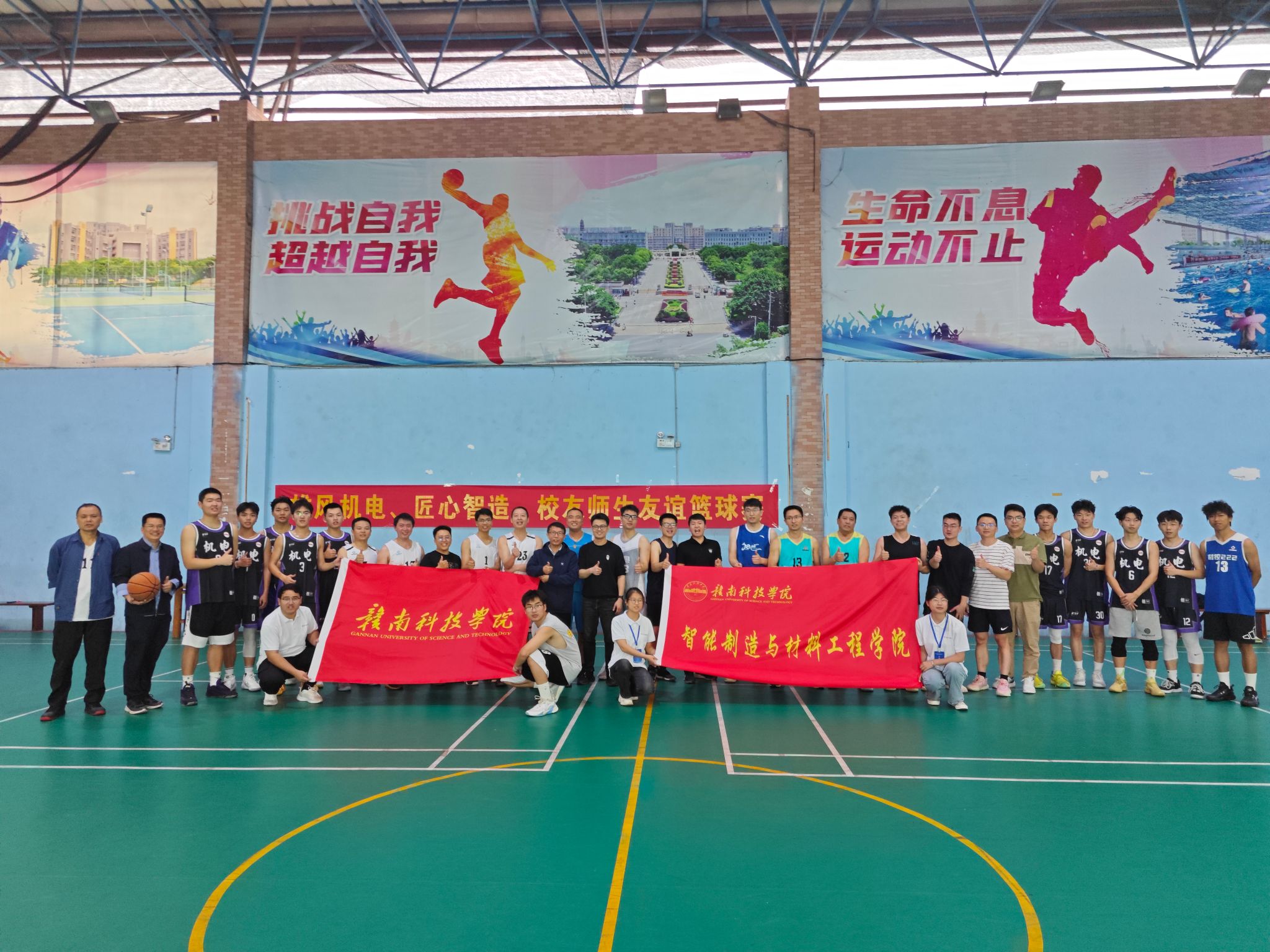比赛当天,球场内人声鼎沸,气氛热烈。校友们身穿球衣,精神焕发,仿佛回到了年轻时代。他们在场上奔跑、传球、投篮,每一个动作都充满了对篮球的热爱和对青春的不舍。观众们也热情高涨,不时为球员们的精彩表现欢呼鼓掌。