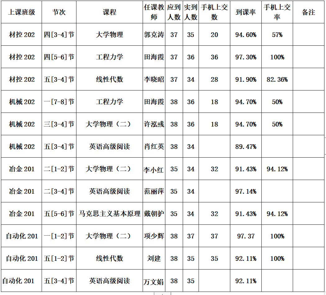 一、第六周抽查到课率情况通报