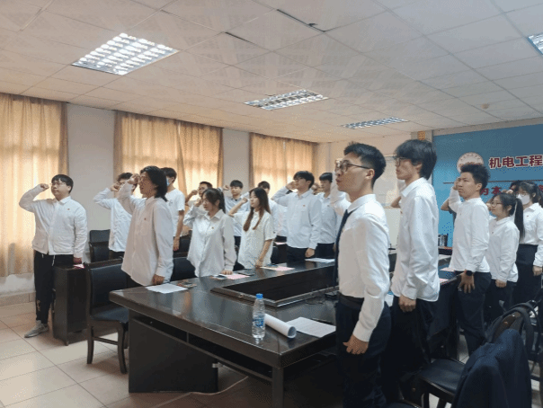 本网讯(作者:周强辉):为深入学习党的二十大精神,传承和弘扬五四精神,团结引领青年学生自觉培育和践行社会主义核心价值观,坚定不移跟党走,建功新时代。2023年5月19日上午,机电工程系在工程院s416举行2023年机电工程系新团员入团仪式,机电工程系党总支书记朱根松、机电工程系副主任肖志华、机电工程系团总支书记张敏及各班团支书出席仪式。